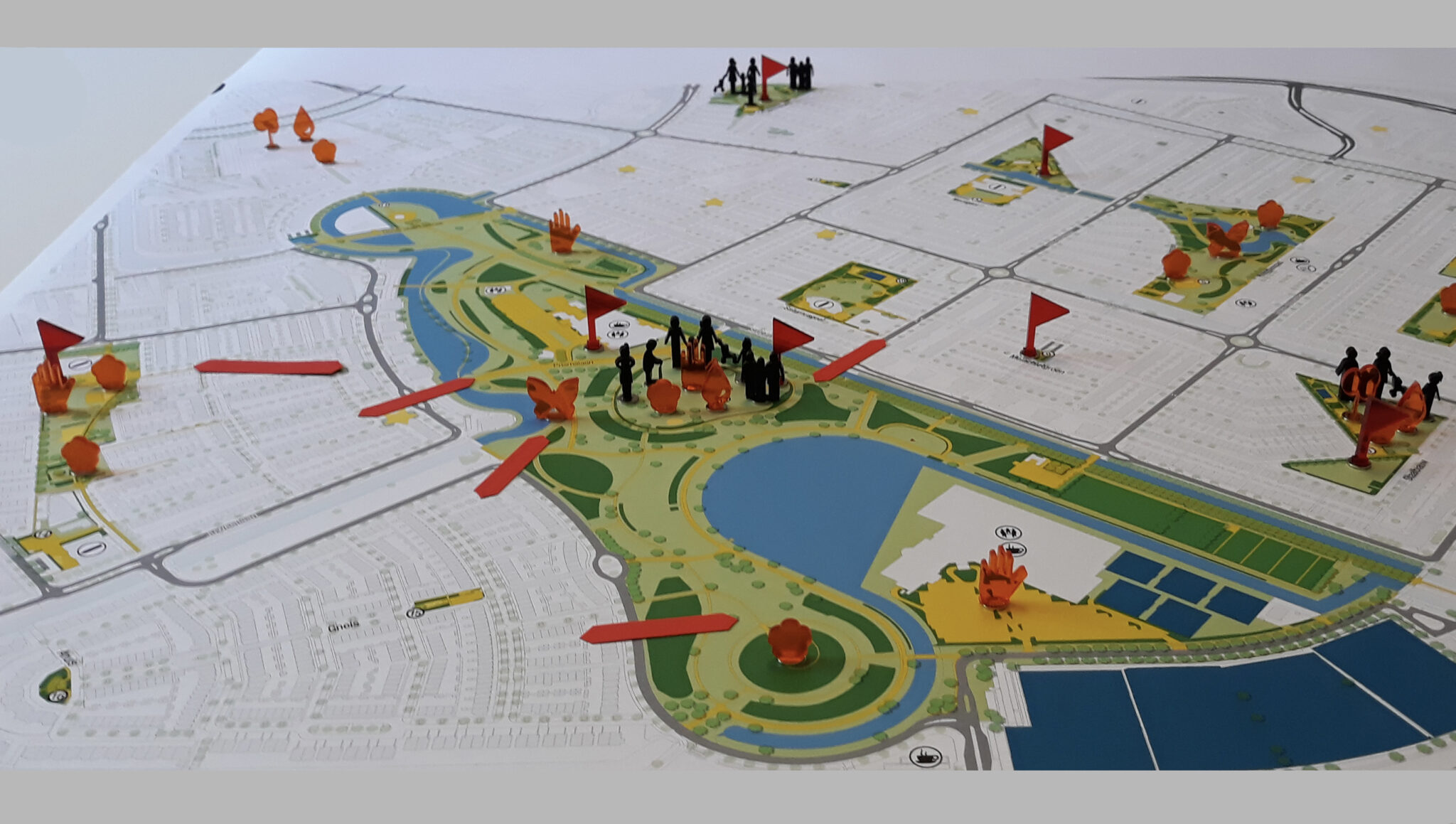 Alle uitkomsten bij elkaar hebben we vertaald naar uitgangspunten voor het ontwerp. De uitgangspunten en het ontwerp zijn tijdens een tweede grote buurtbijeenkomst gepresenteerd waarbij omwonenden de mogelijkheid hadden om te reageren. Door de buurtbijeenkomsten in het park zelf en het bordspel in het aangrenzende scoutinggebouw te organiseren, was het voor omwonenden makkelijk en laagdrempelig om deel te nemen.