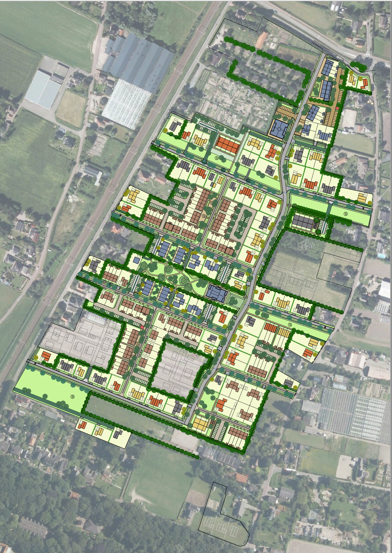Elk deelgebied heeft haar eigen mix van soorten woningen afhankelijk van de locatie: dwarslaan, hoofdlint, aan het groen of richting het bestaande dorp. Door de hiërarchie in structuren kan ieder lint, dwarsstraat of hof een eigen sfeer uitstralen. Binnen de profielen is er nagedacht over klimaatadaptatie en zijn er groene greppels en parkeerplaatsen om groen en water meer de ruimte te geven.