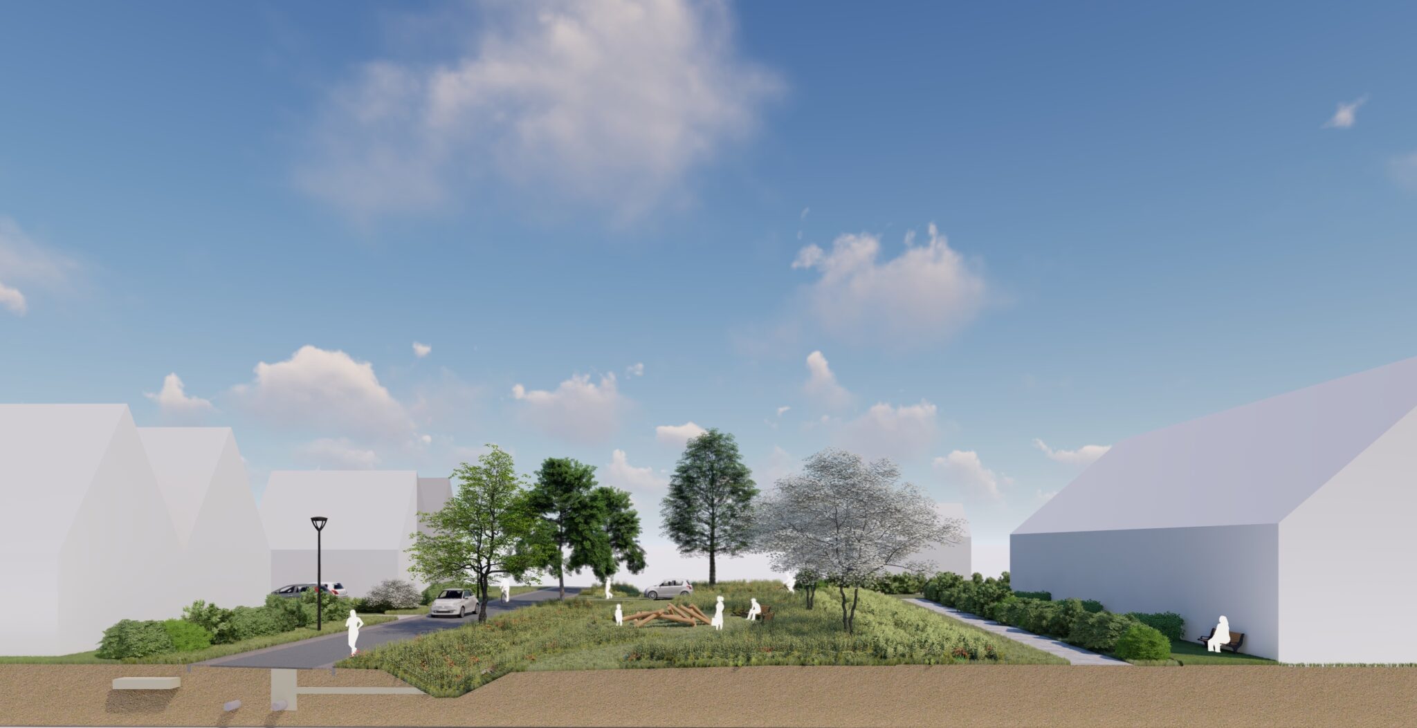 Het resultaat is een afwisselende wijk geïnspireerd op de bestaande landschappelijke structuren waarin groen de ruimte krijgt.
