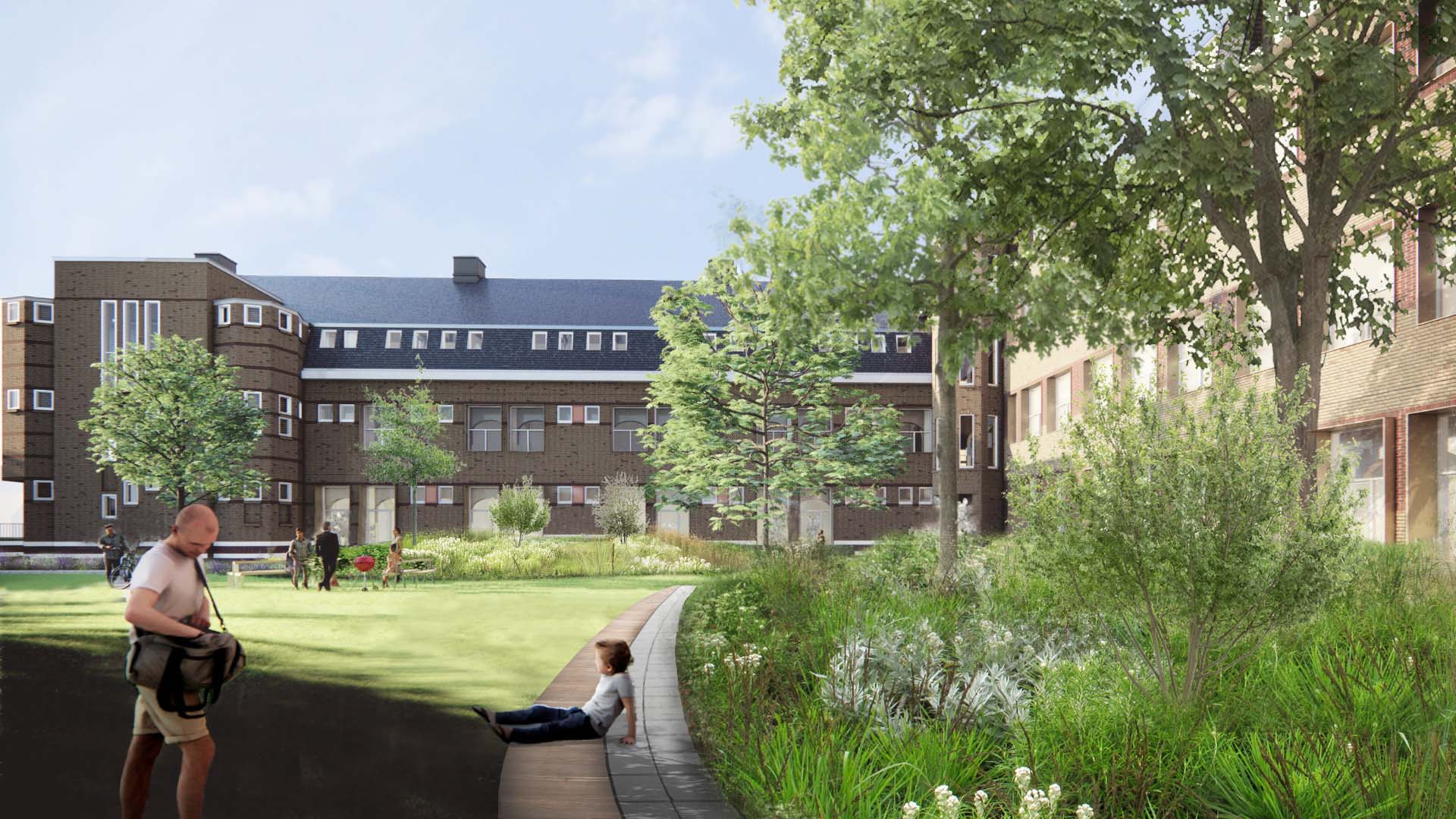 De HilleHof is een voormalige scholencomplex aan de rand van tuindorp Vreewijk. In het monumentale pand worden 72 huurwoningen gerealiseerd rondom een gemeenschappelijk binnenhof. Fullhouse Vastgoed vroeg Urban Synergy een ontwerp te maken voor de buitenruimte.