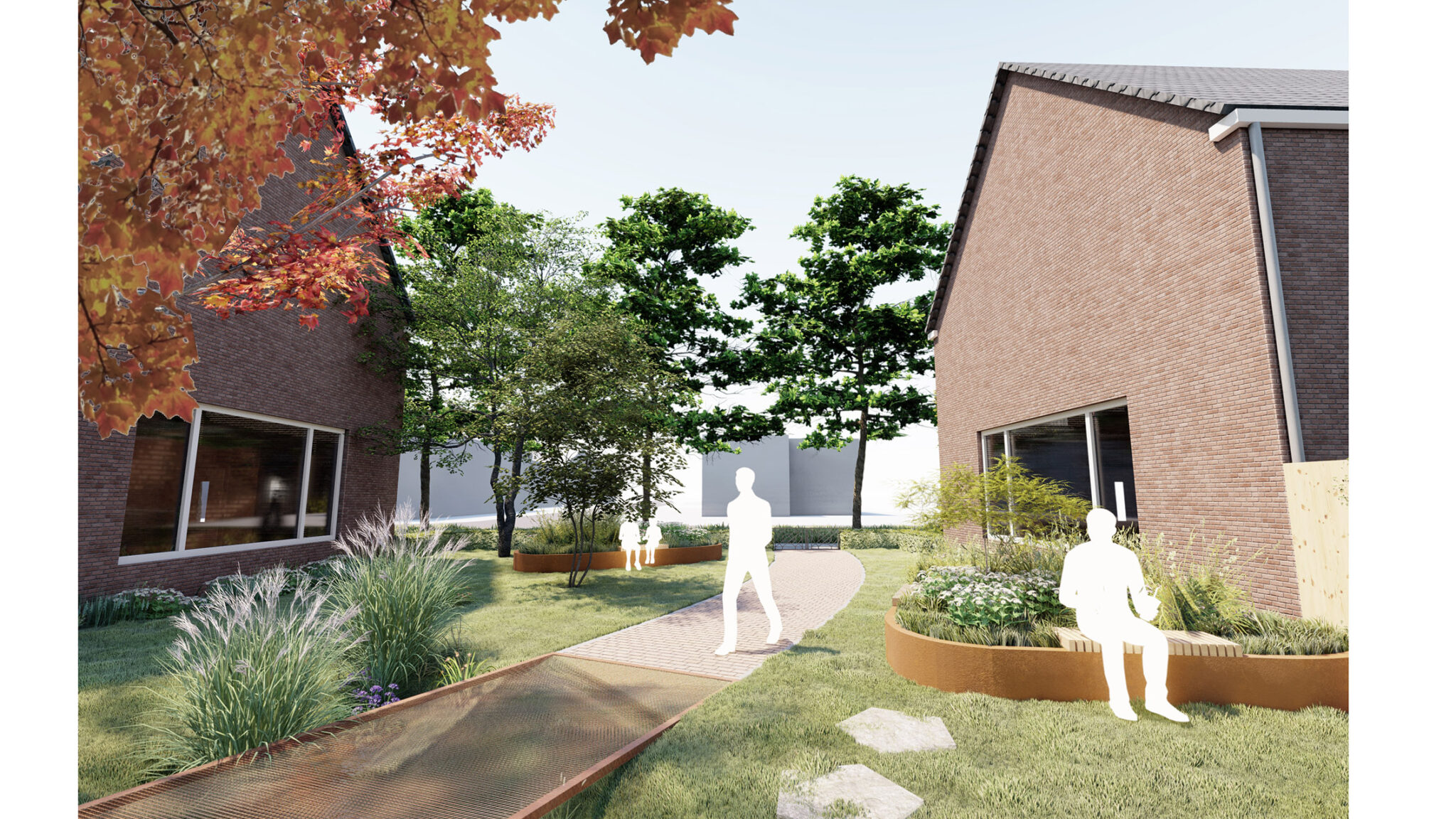 - Hoe kan de inrichting van de openbare ruimte, met name een gemeenschappelijke groenstrook centraal in het gebied, de sociale cohesie in de wijk versterken?