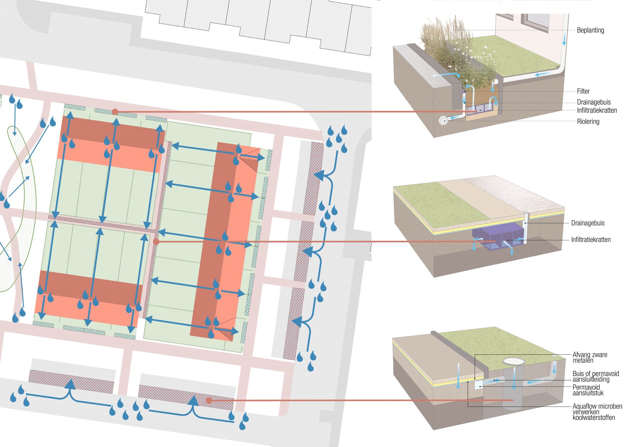- Waterbergende fundering onder parkeerplaatsen.