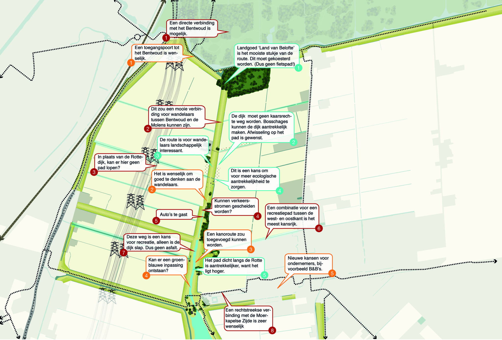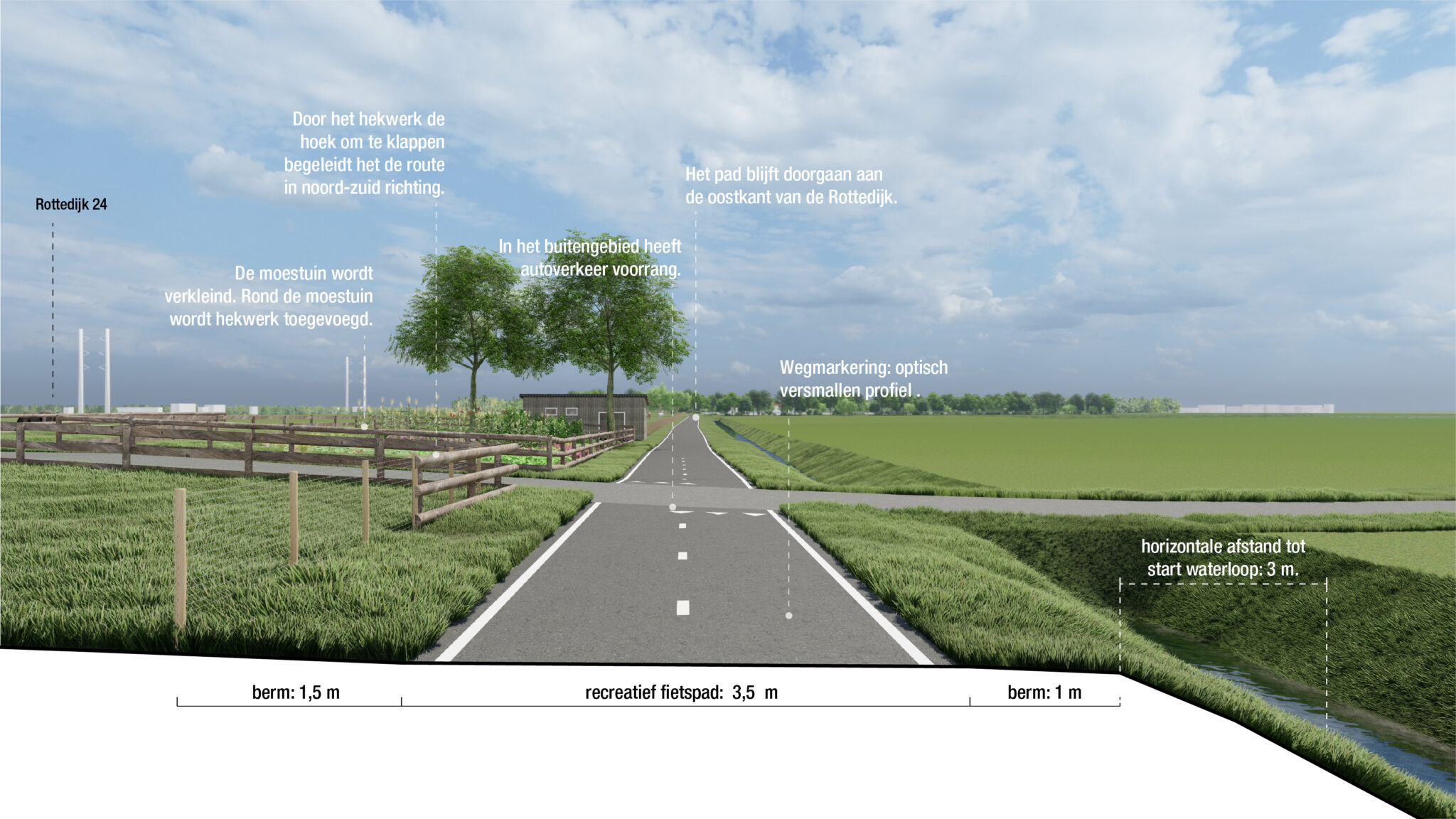 Zo kan ieder stuk van het fietspad zijn eigen verhaal vertellen en wordt niet alleen de Rotte beleefd maar het gehele landschap.