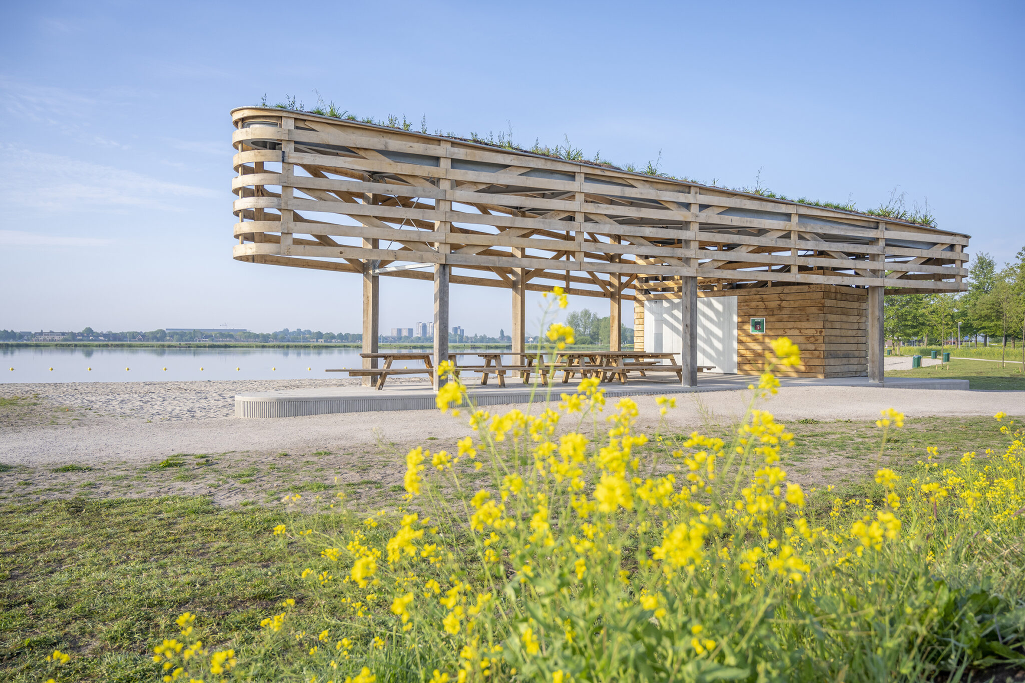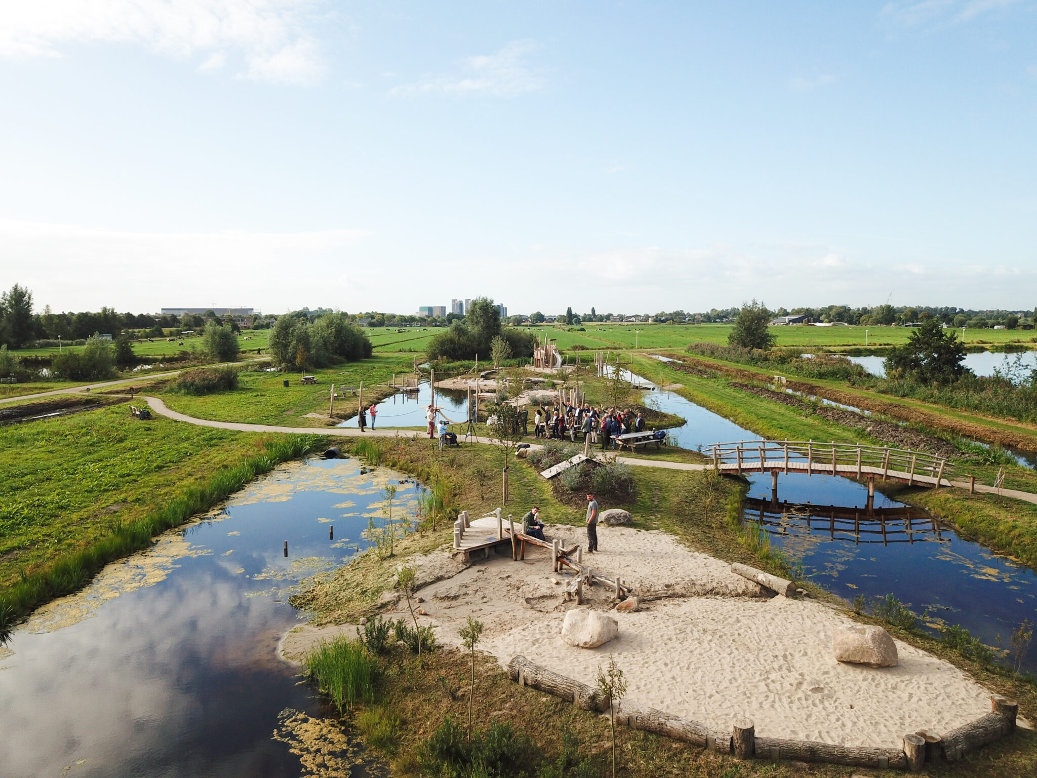 In opdracht van Groenalliantie. Ontwerpen verder uitgewerkt door bureau RIS, Speelmol uitgewerkt en gerealiseerd door blowups, ontwerp paviljoen studio FRAME, uitvoering totale Kwaliteitsimpuls Verboon Maasland.