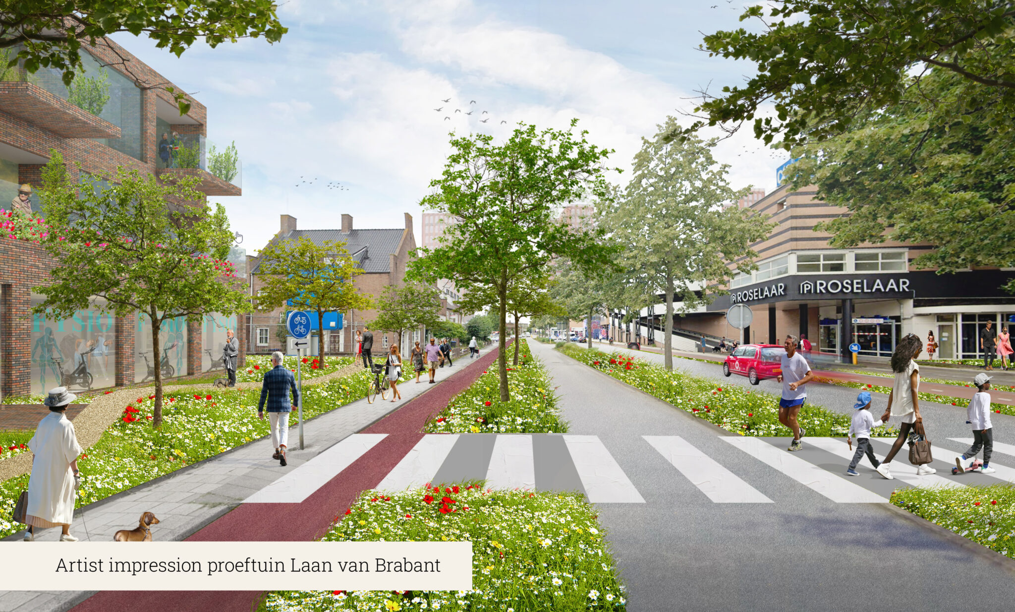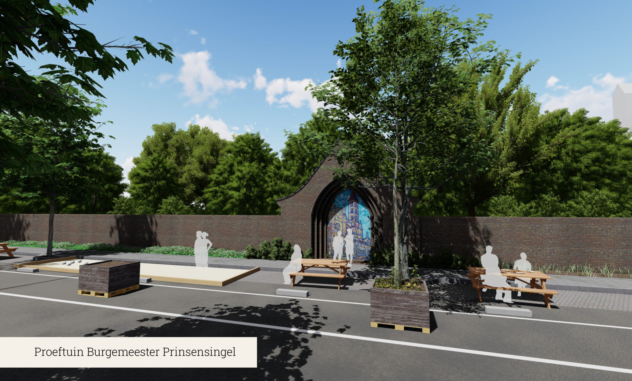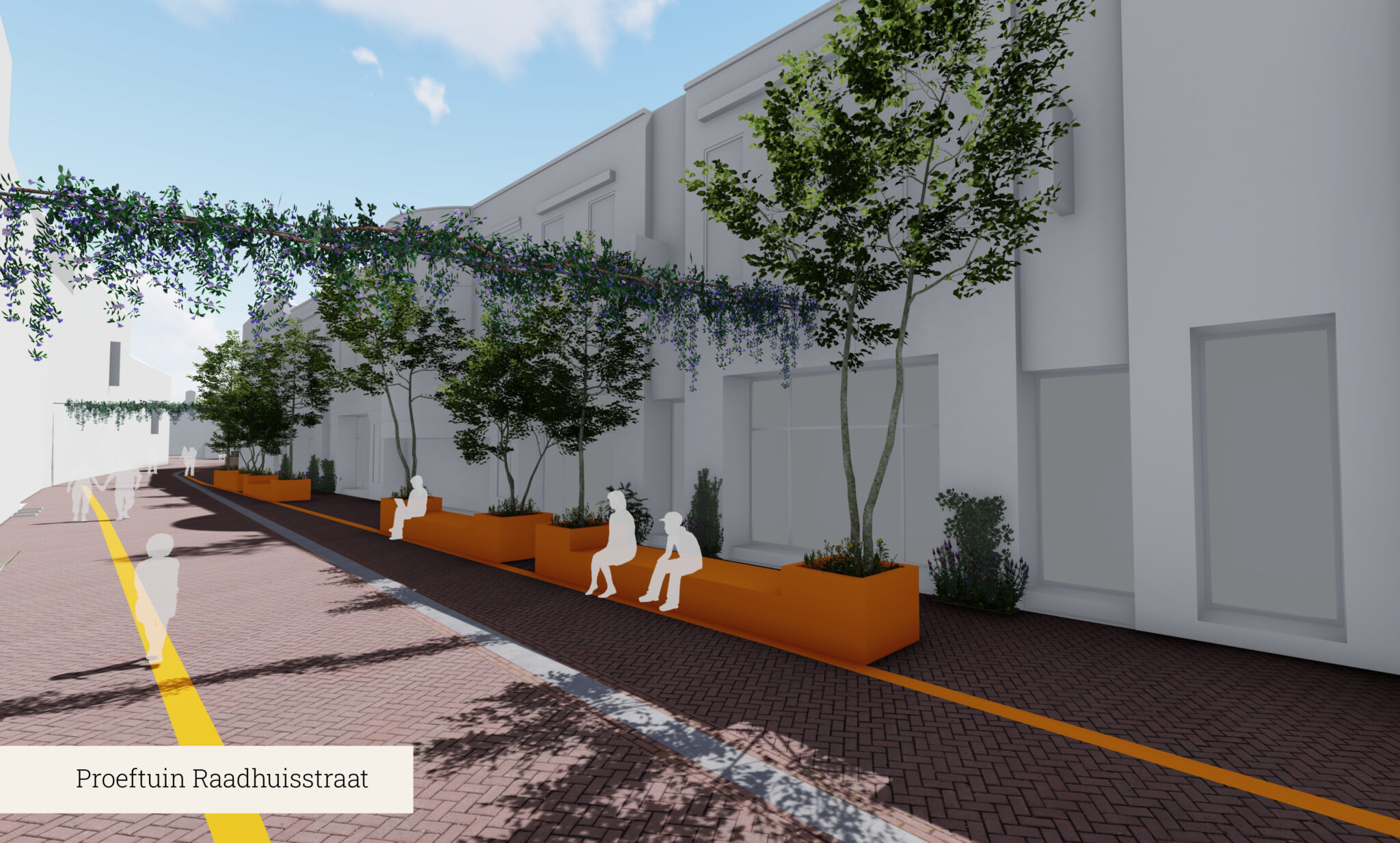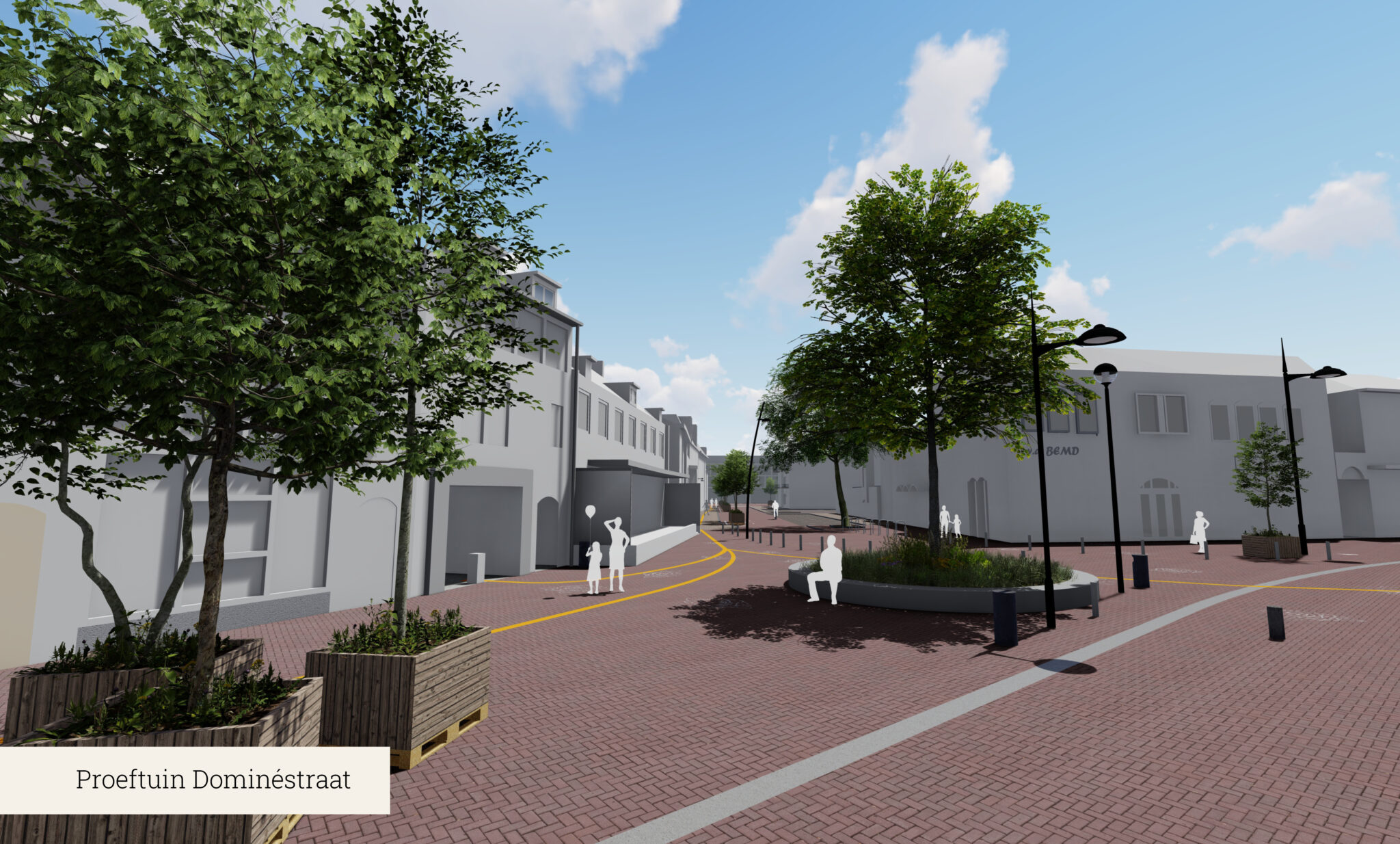 Enkele van de projecten en studies worden getest aan de hand van tijdelijke proeftuinen. Een voorbeeld is een proeftuin bij het Stationsplein, waar een groener, veiliger en klimaatadaptief plein wordt getest. Met behulp van boombakken wordt het plein minder stenig en roze stippen geven op de rijweg aan dat er op de snelheid gelet moet worden.