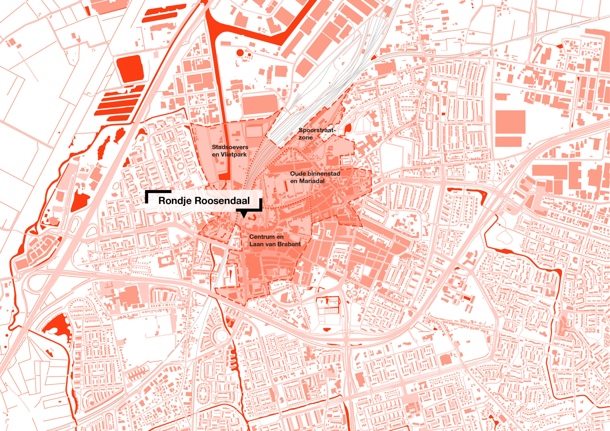 Rondje Roosendaal omvat: cultuurkwartier, kern winkelkwartier, historische buurten, Spoorstraatzone, Stadsoevers en Vlietpark, Laan van Brabant en Laan van Limburg.