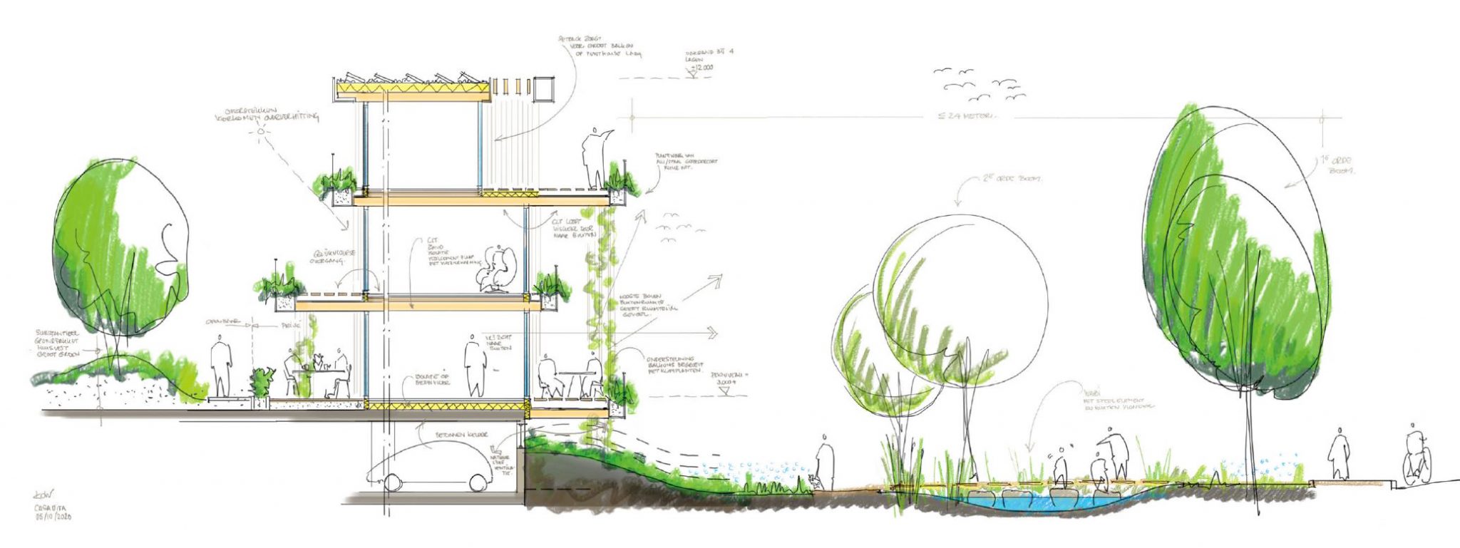 Op het terrein worden, in een parkachtige landschap, zo’n 100 appartementen gebouwd in hout. Een ambitieus plan op het gebied van architectuur, natuur en de relatie met de omgeving.