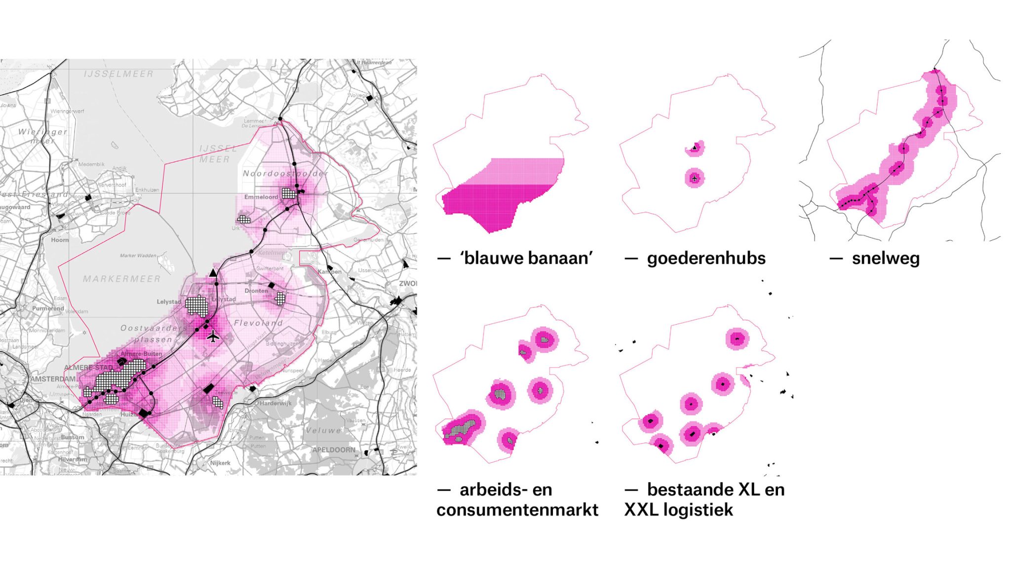Samen met de Vereniging Deltametropool verkenden we hoe deze enorme bedrijfsgebouwen kunnen worden ingepast in het landschap. Ons advies aan de provincie Flevoland: